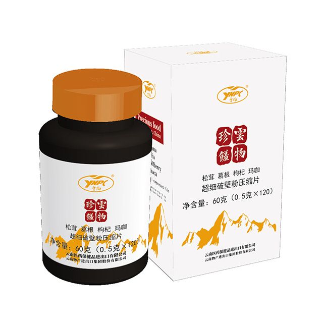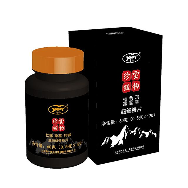 以野生的松茸、葛根和瑪咖為原料,經(jīng)過(guò)超細(xì)微破壁粉碎后壓制成精片的營(yíng)養(yǎng)滋補(bǔ)食品。